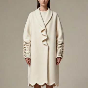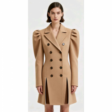 • 保暖与隔热收腰泡泡袖双排扣羊毛大衣