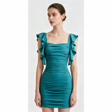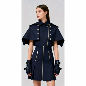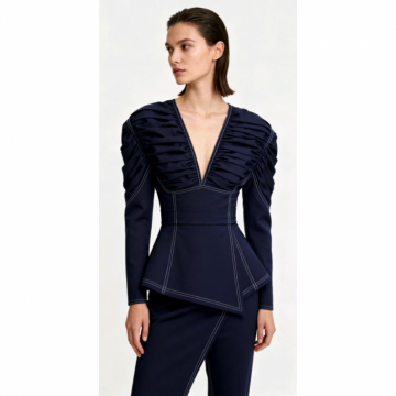 • 塑形与修饰深V领褶皱收腰上衣+不对称下装的套装